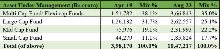 When we look at the size of the total assets deployed in small-cap and mid-cap schemes of mutual funds, we find that the assets under management (AUM) of the small-cap and mid-cap funds are now almost as large as large-cap funds.